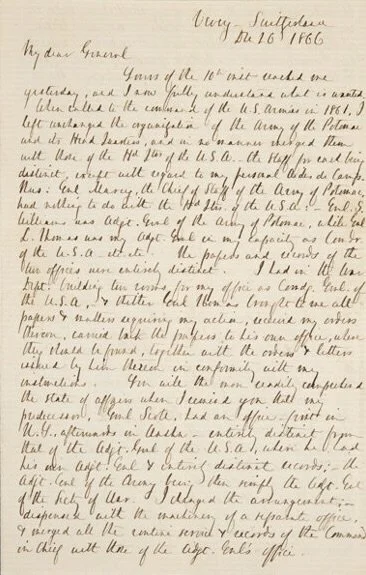 When Ulysses S. Grant became General-in-Chief of the United States Army, he grew concerned about missing documents dating from the period when George McClellan had served as General-in-Chief. To determine why these records were unaccounted for, Grant examined the organization of the army and its record-keeping practices during McClellan’s tenure.